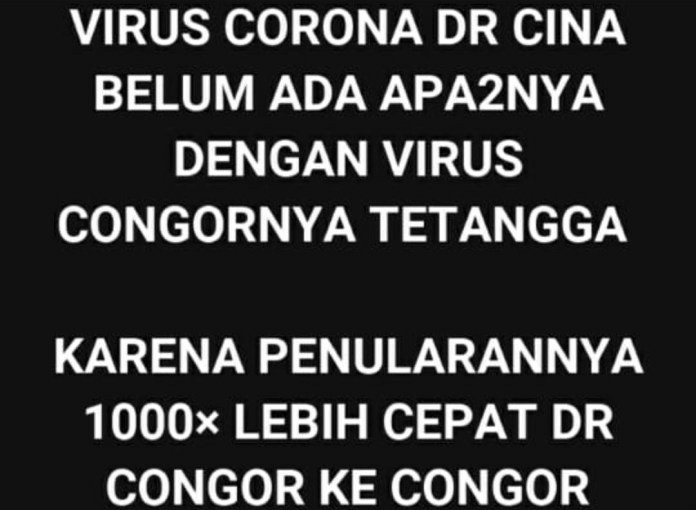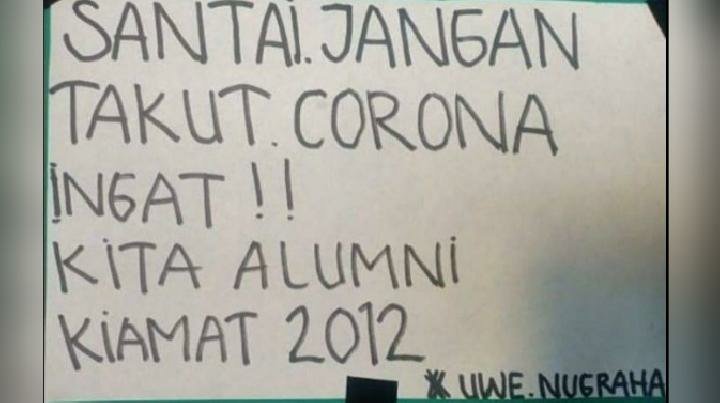 Nah, kreatif sekali kan warga +62. Disaat orang lain was-was mereka para aktivis meme malah mendapat inspirasi dari kedatangan virus ini. Bagaimanapun kita harus berjaga-jaga dan melindungi diri agar tidak terjangkit virus covid-19, kita harus menerapkan perilaku hidup bersih dan sehat agar terhindar dari virus ini.